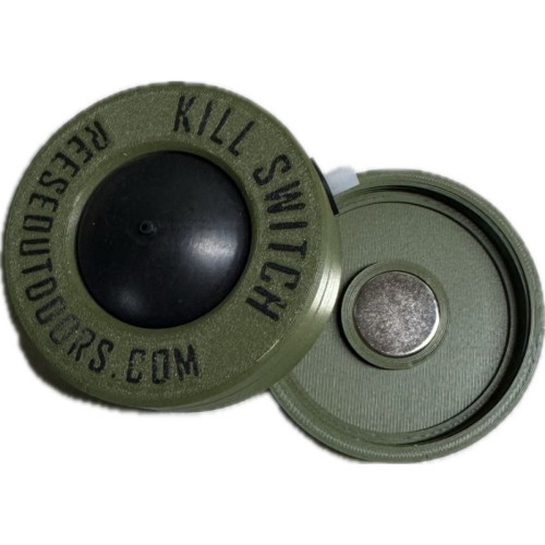 The Kill Switch features a magnetized saddle that will secure it while in use and to and from the field. The Kill Switch comes with two mounts, one for your tripod and one for your Reese Chest Pack(molle attachment).